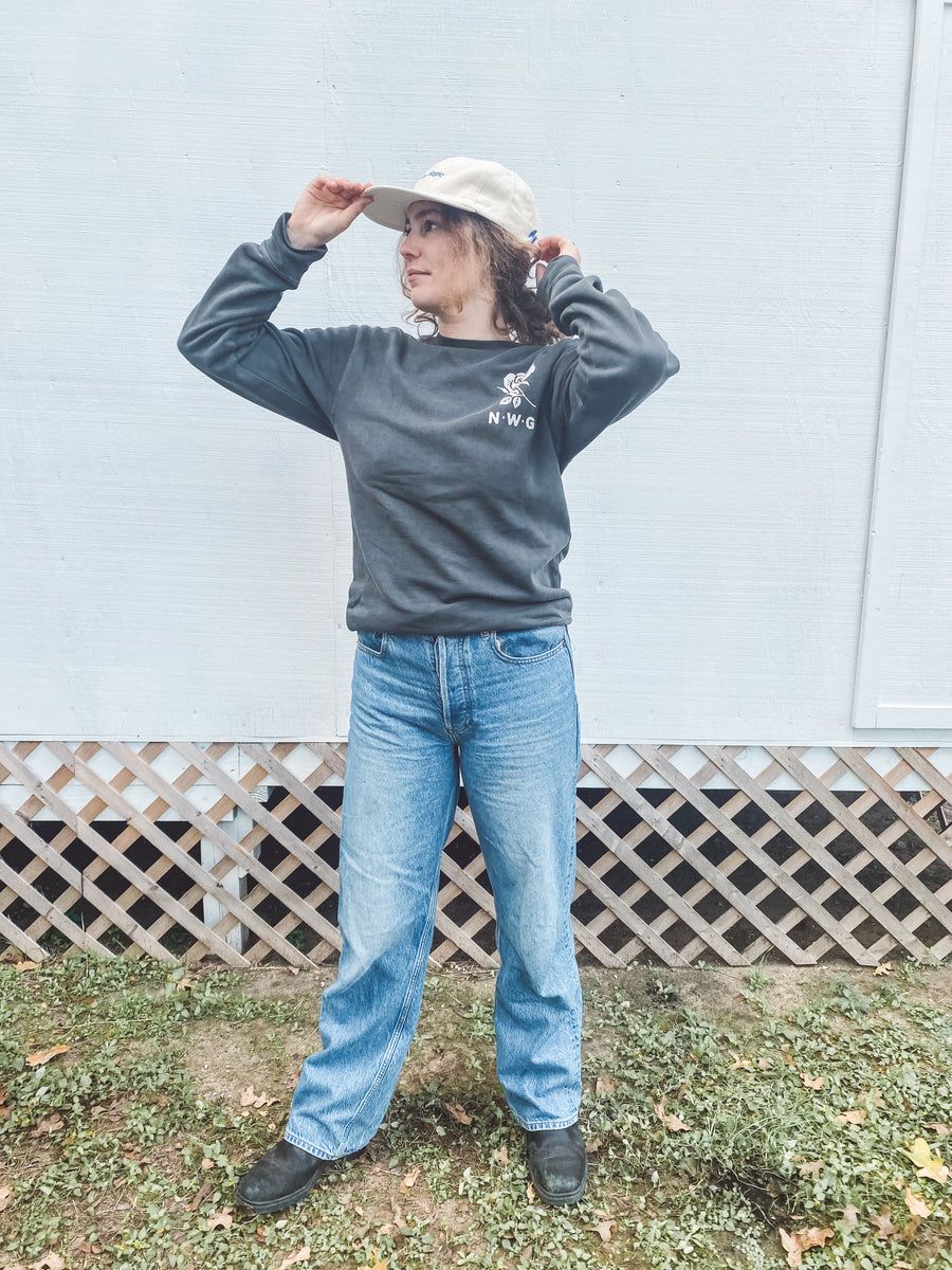 This sweatshirt comes in 2 colourways, the charcoal and the sandstone (see other product page). Both sweatshirts are printed in Austin, TX on an extremely soft, garment-dyed sweatshirt.